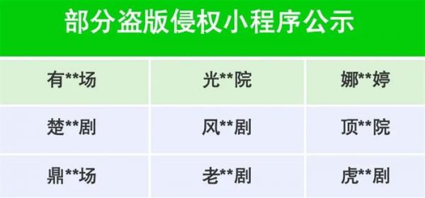 部分盗版侵权小程序公示:
