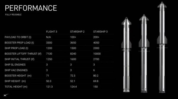 三代星舰并排展示,长度逐代拉长|SpaceX