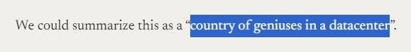 总结来说,Dario将Powerful AI比作:住在数据中心中的天才国家。