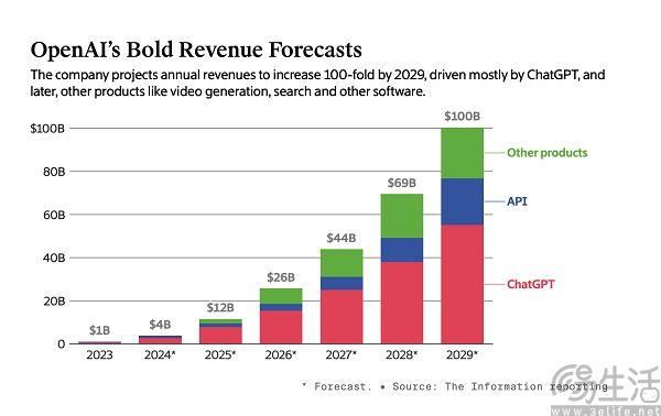 刚刚完成了硅谷史上最大一次融资的OpenAI,似乎又双叒叕有麻烦了。据OpenAI公司最新的预测显示,直到2029年该公司才能实现盈利,届时其收入将达到1000亿美元。然而根据The Information对OpenAI财务文件的分析,在达到盈利节点前,该公司到2026年的亏损可能会高达140亿美元。