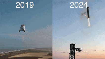 想必大家都看过这第五次试飞的高光时刻——筷子接火箭的场景,乍一看和火箭发射倒放差不多。