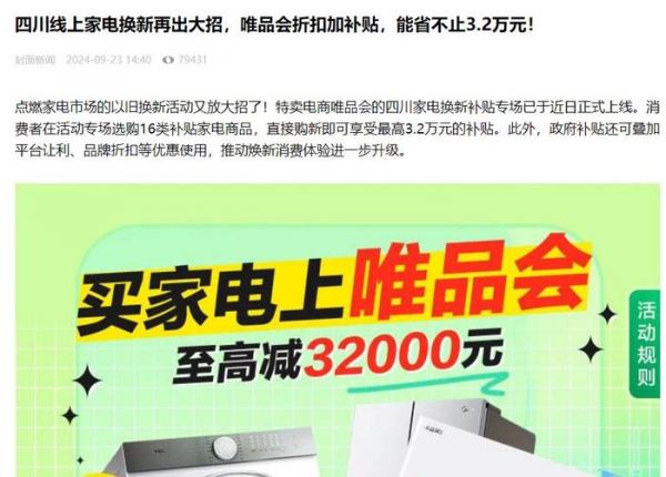 而且这次,唯品会不仅把服饰美妆等品类价格打下来了,家电品类的优惠力度也很可观。在国家“以旧换新”活动的背景下,“双11”优惠一波后,再叠加家电8.5折-8折的优惠,双BUFF叠加下,有的家电可以干到6折、7折。