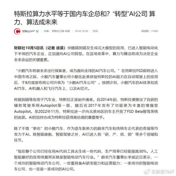 我们如果冷静的思考,放到如今智驾算力上来看,我们确实需要思考如何采用一种更好的芯片模式与算力发展模式与特斯拉竞争。