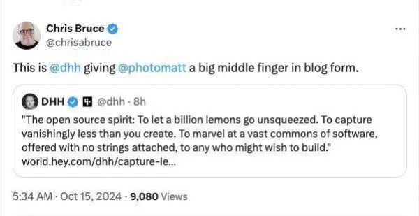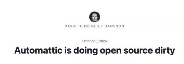 DHH 连发两篇标题惊悚的文章,对 Mullenweg 进行了某种程度的“批判”,并呼吁 WordPress 和 WP Engine 和解。他认为,双方之间的争端已经严重违反了开源社区的原则。