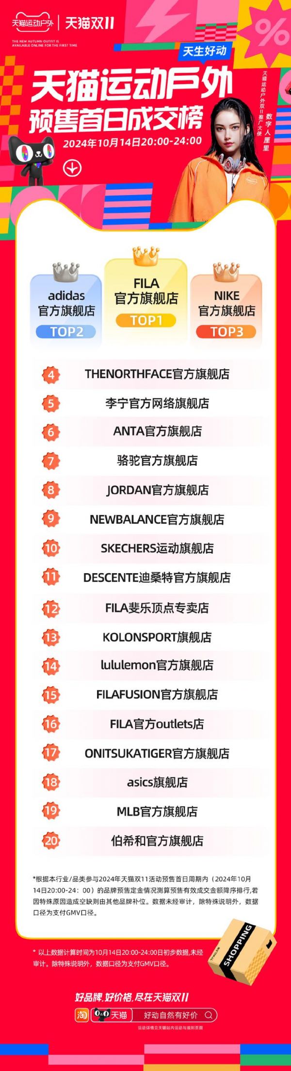 运动户外品牌也迎来了大爆发。预售首小时,6个运动户外品牌成交额破亿,32个爆款单品成交额破千万。其中,KOLON SPORT可隆、TREK/崔克等品牌预售首小时成交额便超过去年预售首日。阿迪达斯600蓬羽绒服更是开卖立即破亿,展现出强大的市场号召力。