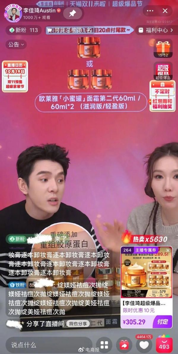 双11一开启,李佳琦直播间就迅速破亿,可复美、娇兰、欧莱雅等等多个品牌秒空或一分钟售罄。