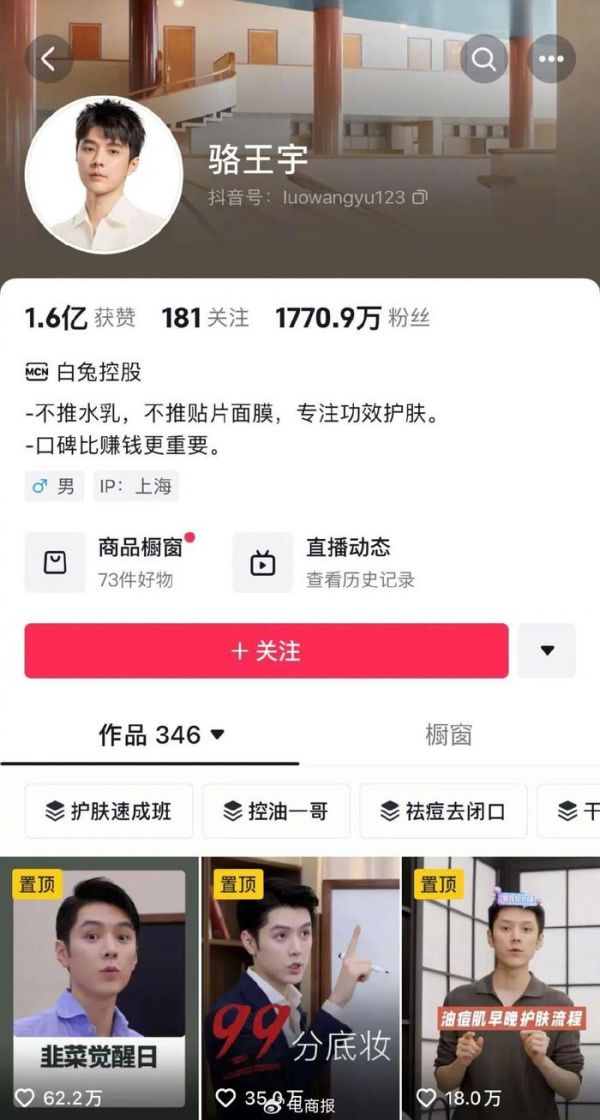 在了解完淘宝美妆一哥李佳琦之后,我们再来看看刚宣布回归的抖音美妆一哥骆王宇。