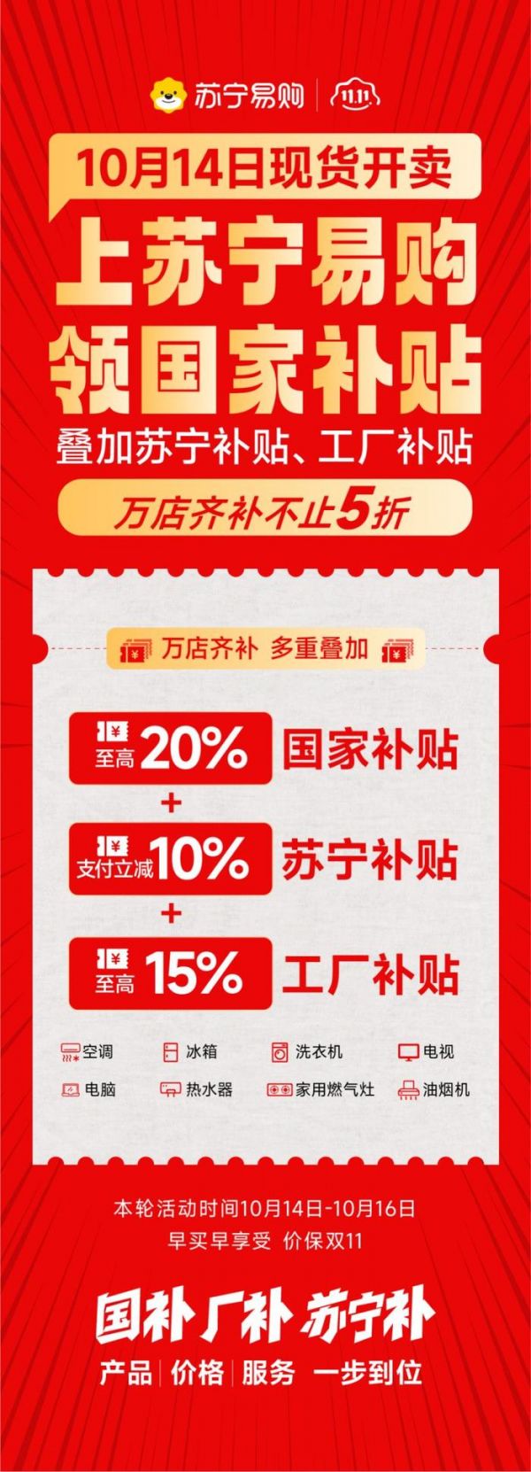 作为政府指定补贴发放平台,苏宁易购在政府对绿色节能产品15%-20%的优惠基础上,还联合品牌商家、金融机构为消费者提供了更多优惠、更好服务的换新体验。