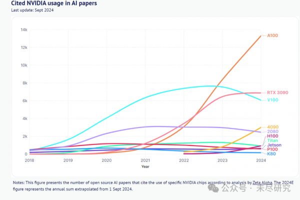 不同英伟达芯片在AI论文引用情况