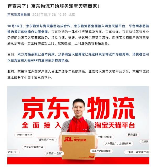 京东物流官宣:正式接入淘宝天猫平台!