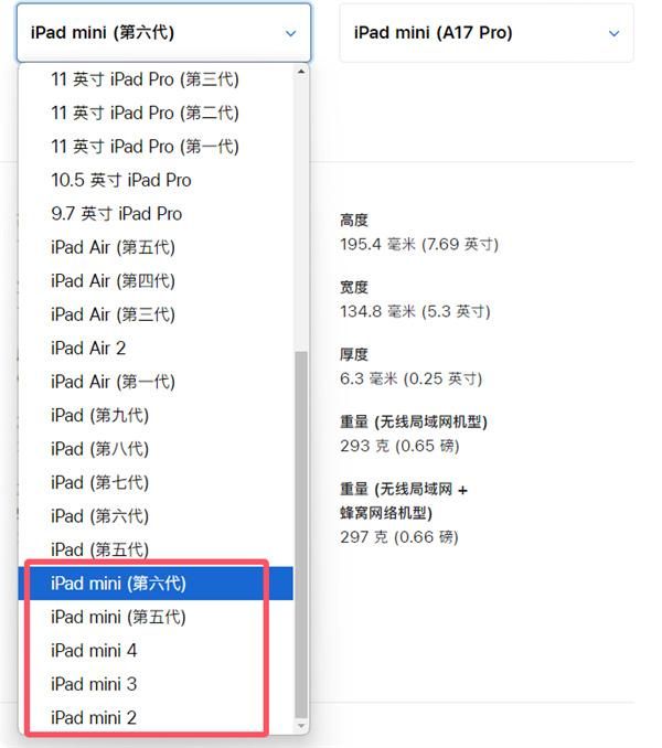 而以往机型则会命名为iPad mini 2、iPad mini 3或iPad mini(第六代)。