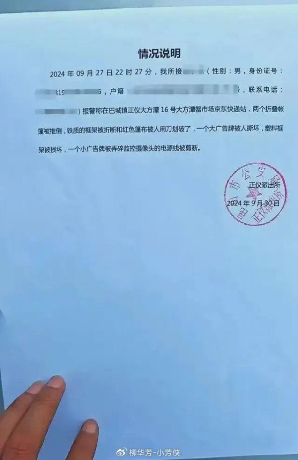 在江苏某地,多家快递公司正在进行大闸蟹揽收,京东快递员在揽收点搭设了广告牌、帐篷,他们要将阳澄湖大闸蟹送到千家万户。在丰收时光里,每个人都是开开心心的,但是,一觉醒来,广告牌、帐篷被打砸破坏,向来本本分分的京东小哥这是得罪了谁?