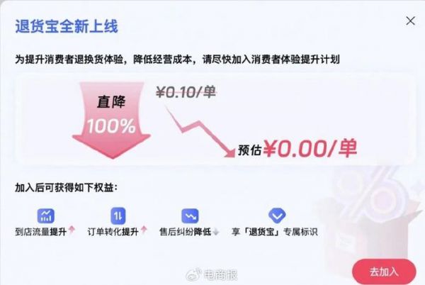 上个月,淘宝在退换货场景推出“退货宝”,表示将为商家降低至少10%的退货成本,部分商家最高将获得30%的成本直降。