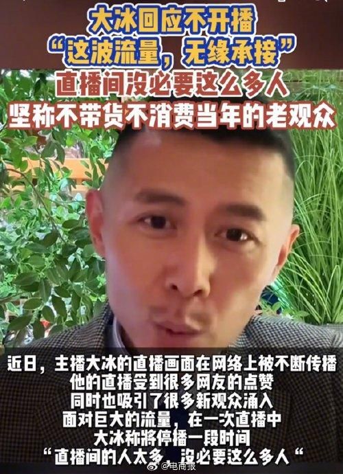 一个月涨粉超百万,坚称不会带货,大冰直播爆火后宣布停播,本人回应:无缘承接这波流量。