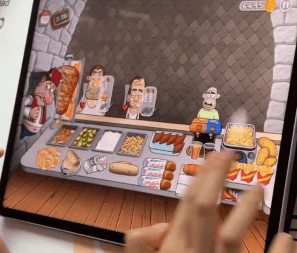 比如《沙威玛传奇》看上去是个经营类游戏,实际上是一个比拼手速和反应的点击游戏——“加料——卷饼——包装——出餐”。当你熟悉了这一流程后,就能逐渐赚钱,升级装备,进入自动化,买自动炸土豆机,自动打包机,自动削肉机等等。
