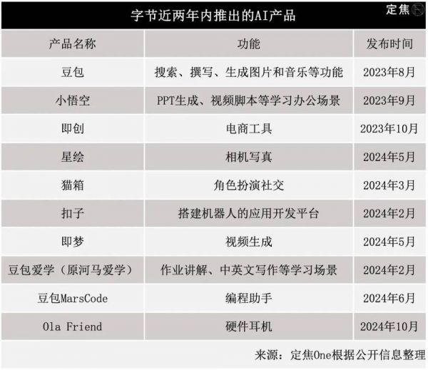 推出AI产品最多的,当数字节。据不完全统计,近两年字节推出的AI产品涉及助手、社交、图像、视频、教育等多个领域。