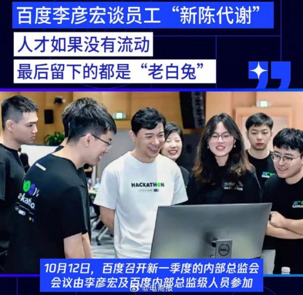 李彦宏总监会谈“新陈代谢”:人才没有流动,最后留下的都是老白兔