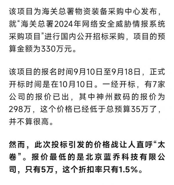 最近有创业者在软件行业高管群发了一则新闻:预算 330 万的项目,有公司直接报价 5 万!