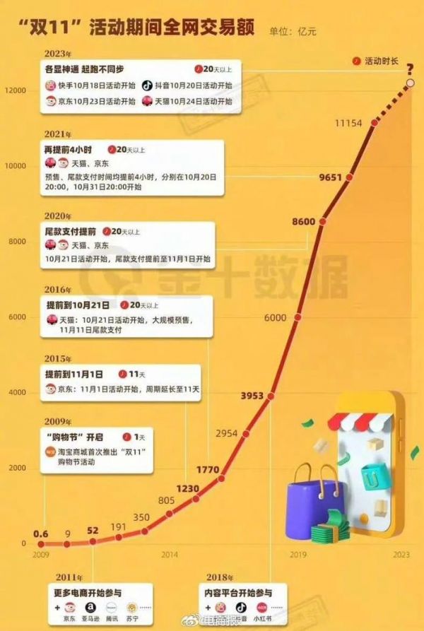 随着电商行业的发展,各大平台根据自身规划,来安排活动的开始时间、预售日期以及尾款支付的时间。于是,双11起跑日期不再同步,整场促销的时间也变得越来越长。