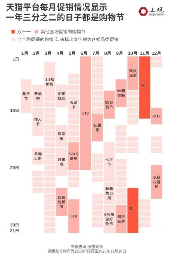 2009年,刚诞生不久的淘宝商城推出了“双11购物节”。其最初的想法是“让消费者每年好好玩一次”,也让消费者能够记住“淘宝商城”这个名字。