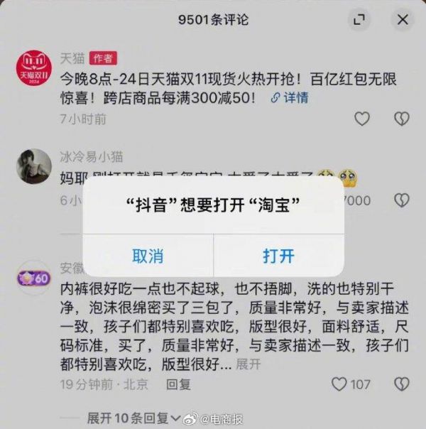 要广告还是要业务?抖音开屏广告卖给了天猫双11活动。[doge]