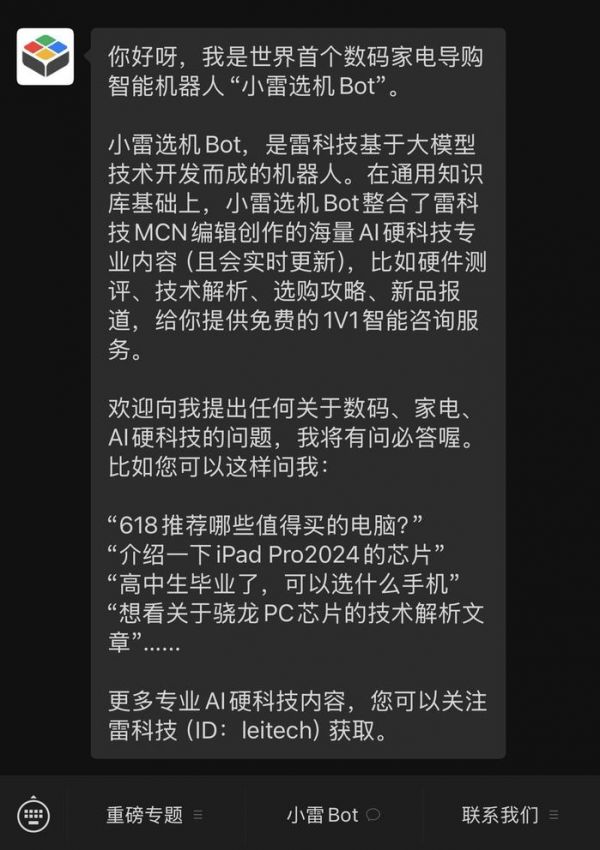 展望未来,微信必将继续在 AI 领域深耕。微信拥有庞大的用户基础和丰富的生态系统,这是其在 AI 时代的独特优势。凭借腾讯混元大模型的支持,微信完全有能力将 AI 技术融入更多场景,为用户提供更便捷的服务。这里小雷给大家举几个例子: