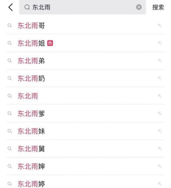 你在抖音的搜索框里输入“东北雨”,搜索出的结果还有: