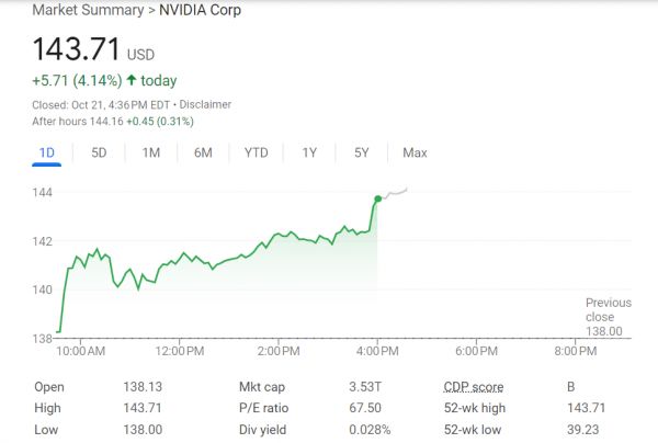 周一,英伟达超越了上周的盘中高点140.89美元,收涨4.14%,刷新收盘历史高位至143.71美元,收盘市值为3.53万亿美元,逼近苹果公司的3.6万亿美元市值。