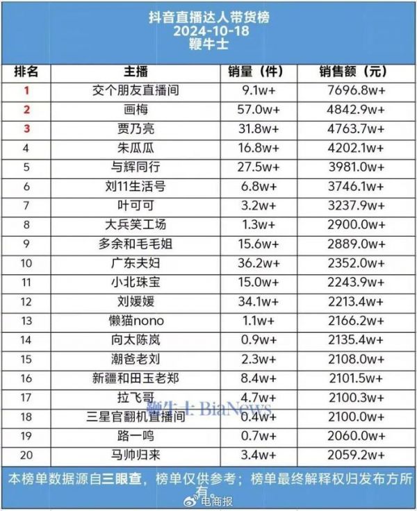 然而,值得庆幸的是,抖音平台上的其他头部主播带货能力依然稳健,部分还有所进步。