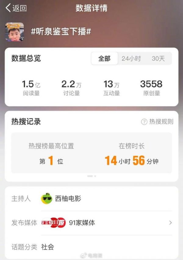 此事发生后,“#听泉鉴宝下播#”话题迅速登上热搜。不少网友认为听泉飘了,面对争议时的态度不够诚恳,处理问题的方式缺乏专业性,显得不够成熟。