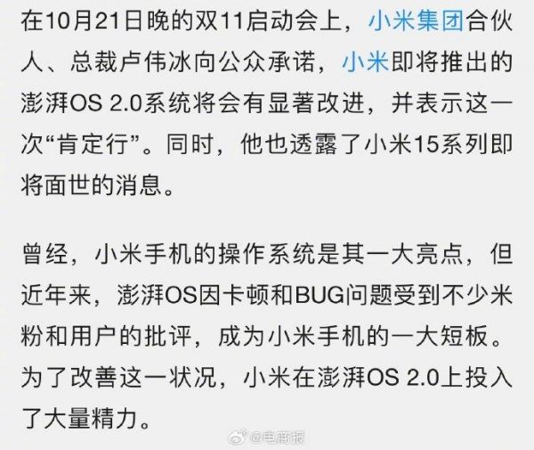 双11启动会上,小米卢伟冰承诺:澎湃OS这一次肯定行!