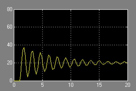 图2中的“Transfer Fcn”模块表示假想的受控对象模型,该模型是传递函数形式,即模块里的多项式分式,读者可以视为黑箱,不用考虑细节。它的输入信号是阀门开度,输出信号是实际温度。“Step”表示期望温度,我们设定为40。期望温度减去观测到的实际温度,就是反馈误差信号,这是控制的依据,在图2中对应“Subtract”模块的输出。显然,最直观自然的控制策略,是根据反馈误差调节阀门开度。当该误差取正值,说明温度偏低,水阀应该向热水方向调节,误差越大,阀门也开得越大。反之,如果误差是负值,水阀向冷水方向调节。总之,阀门的开启角度跟误差成正比。这其实就是所谓的“比例控制”,“Gain”表示对信号的比例放大倍数,中文一般翻译为“增益”。