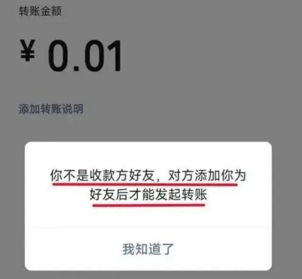 也有网友分享了一些查看微信好友是否把自己删除的小技巧,比如“微信转账法”:打开微信聊天的对话框,然后给好友转账0.01元,如果收到“你不是收款方好友,对方添加你为好友后才能发起转账”这样的提示,就说明你已经被对方删好友了。如果对方没有删除你,就会出现输入密码的界面,此时直接取消转账即可。