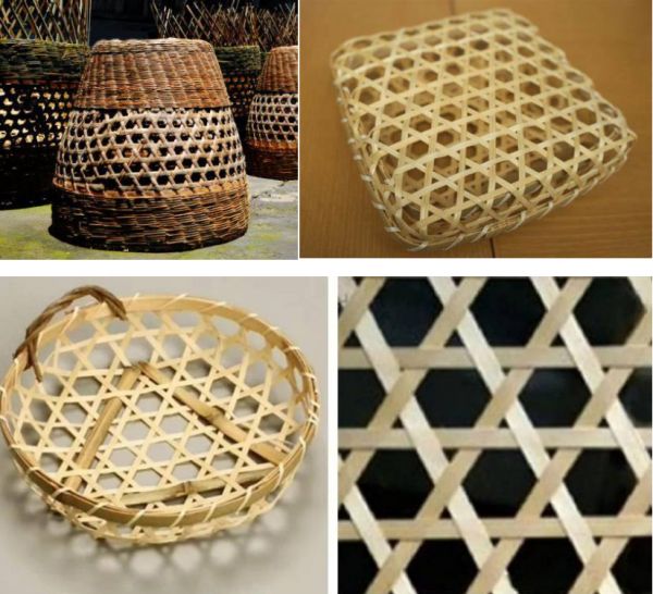 各种“笼目”结构的竹笼、竹篓、竹篮