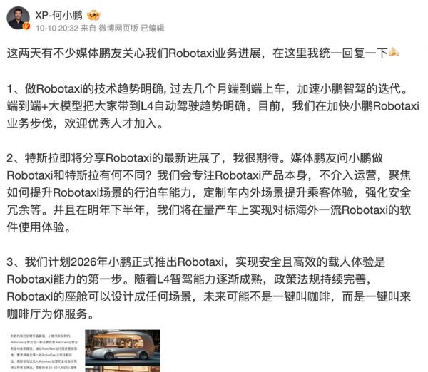 突破这一局面的,是近两年“端到端+大模型”技术的引入。这一技术显著加快了Robotaxi实现的时间预期。何小鹏在其微博中明确指出:“端到端+大模型技术的发展,无疑将推动自动驾驶技术向L4级别的演进。”