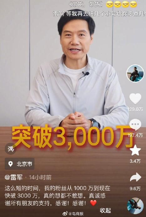 科技圈顶流!粉丝突破3000万,雷军干 “ 网红 ” 也这么成功