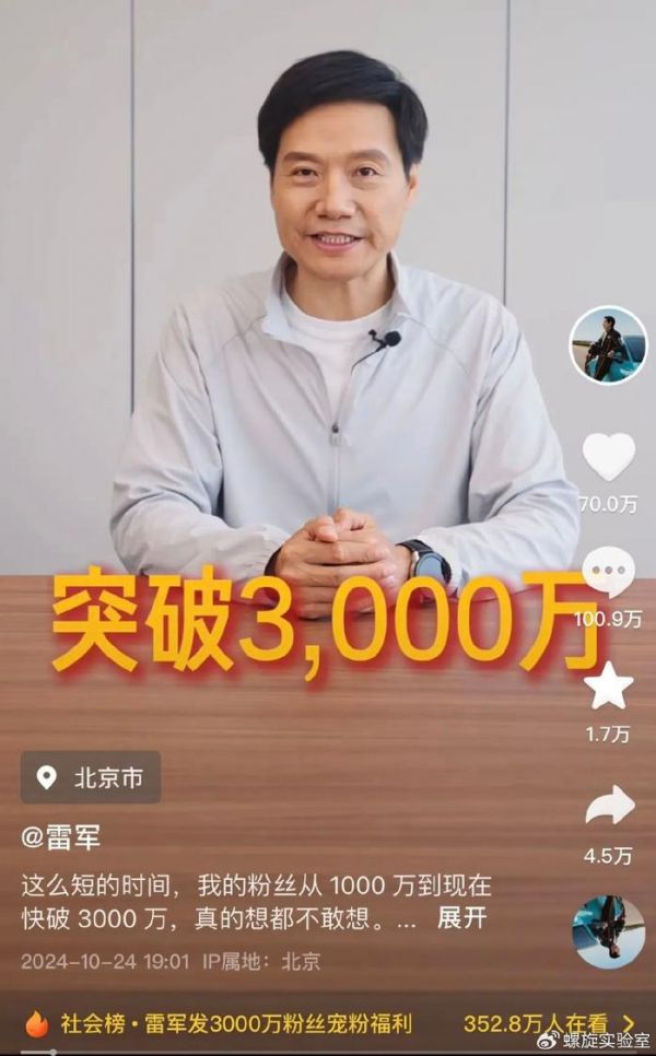 科技圈顶流!粉丝突破3000万,雷军干 “ 网红 ” 也这么成功