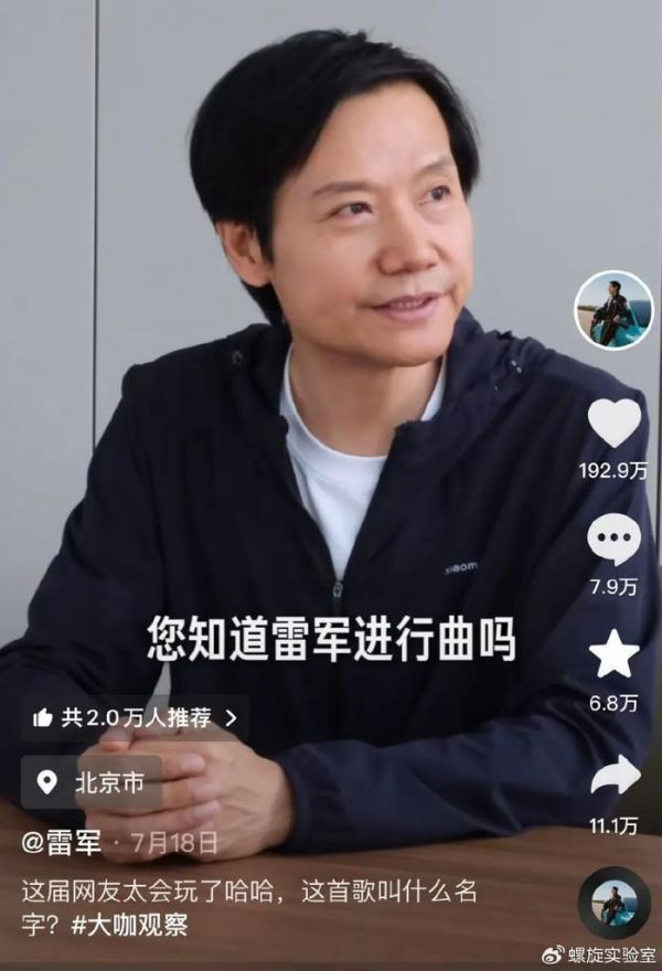 不久前,还有一首网友调侃成为《雷军进行曲》的BGM火了,抖音上有超过300万人使用了这首歌曲作为视频背景音乐,二创、合拍,再度掀起传播浪潮。
