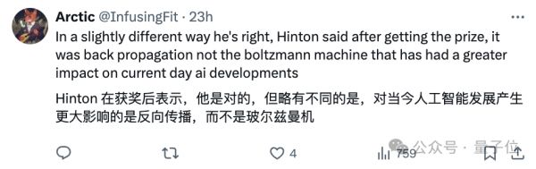 言语间不乏调侃“化学奖塞不下更多人,所以只能选了物理”,“Hopefield是生物物理学家,Hinton的模型以物理学家命名,勉强合理”。