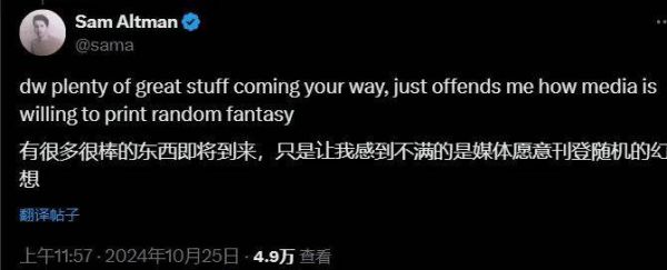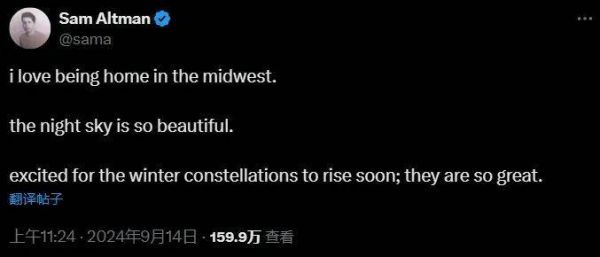 在9月中旬的一条帖子中,奥尔特曼曾赋诗一首: