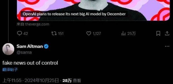 就在科技圈为“GPT-5”终于到来雀跃不已时,OpenAI首席执行官奥尔特曼迅速公开辟谣称,现在假新闻多到失控了。