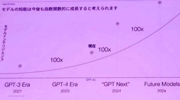 今年早些时候,OpenAI在日本推广时曾表示,在使用相近资源的情况下,下一代GPT大模型的能力可能要比GPT-4强100倍。
