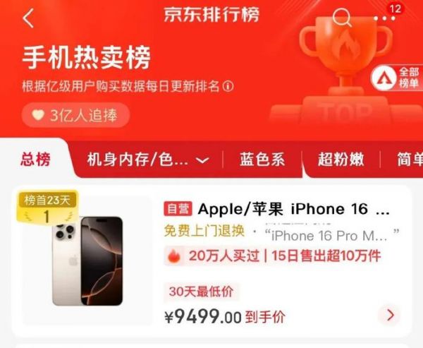 其中iPhone 16 Pro Max高端机型在今年的受欢迎程度也明显上升,该机型甚至在京东销量榜上23天位居榜首。