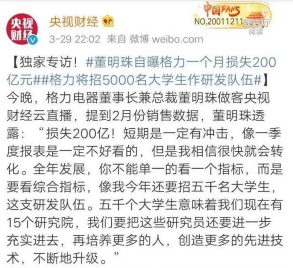 最前线 | 格力2月或损失200亿元,董明珠称造手机和汽车不是“打水漂”
