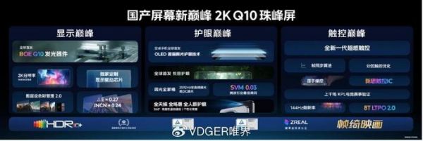 iQOO 与京东方联合打造的 2K Q10 珠峰屏,全球首发搭载 Q10 发光器件。iQOO 13 还全球首发 OLED 圆偏振光护眼技术,将线偏振光转换为圆偏振光,模拟自然光,带来舒适护眼体验,获德国莱茵顶级认证并通过国家眼科工程中心测试,开启硬件护眼新时代。同时,全新一代超感触控技术带来高品质触控响应,通过游戏分区触控优化,实现 FPS 游戏操控天花板。