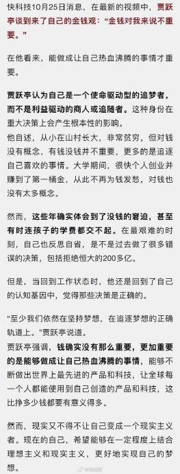 贾跃亭谈金钱观:钱对我来说不重要。