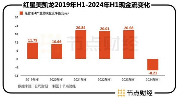 从最基本的现金流观察,今年半年报显示,红星美凯龙经营现金流净额为负8.21亿元,同比下滑139.71%。更进一步来看,在2024年之前的很多年,红星美凯龙现金流都极少出现负值的情况。所以,当前的情况在某种程度上也说明,公司的自身造血能力已经严重受损。