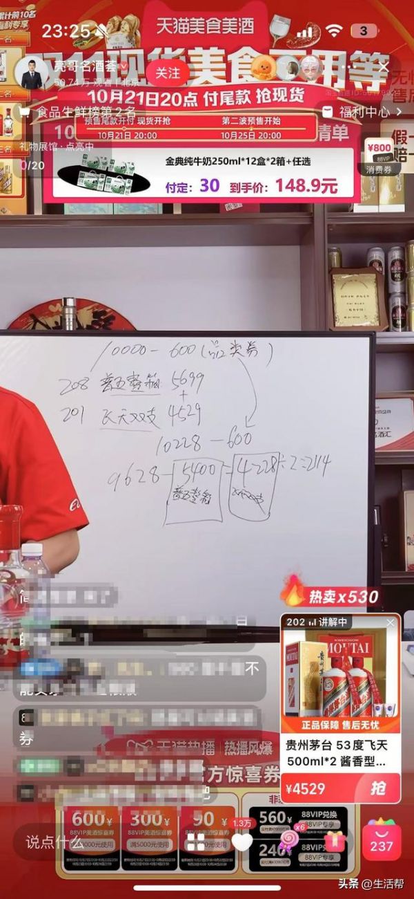 时代财经观察发现,天猫的低价补贴名目最多,除了川酒券,还有余杭券、88vip消费券、茅五券等,且头部主播更多力推大额订单。