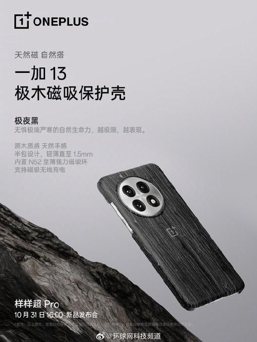 【一加 13 手机磁吸保护壳公布:极木、几何芳纶纤维、经典砂岩】一加 13 手机将于 10 月 31 日 16:00 发布,今晚官方公布了这款新机的四款配套手机壳。在此前的预热中,一加 13 已经确认搭载二代 2K 东方屏、骁龙 8 至尊版处理器、100W 超级闪充 + 50W 无线闪充、6000mAh 冰川电池、哈苏超光影旗舰三主摄、400 米超远距灵动蓝牙、红外遥控、全区域多功能 NFC、USB 3.2 Gen1、三段式开关设计等。(via IT之家)