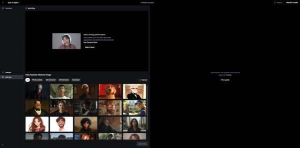 上面是你要上传的视频,下面是你要上传的角色,Runway为了给大家快速上手玩,也放了一堆默认的角色。